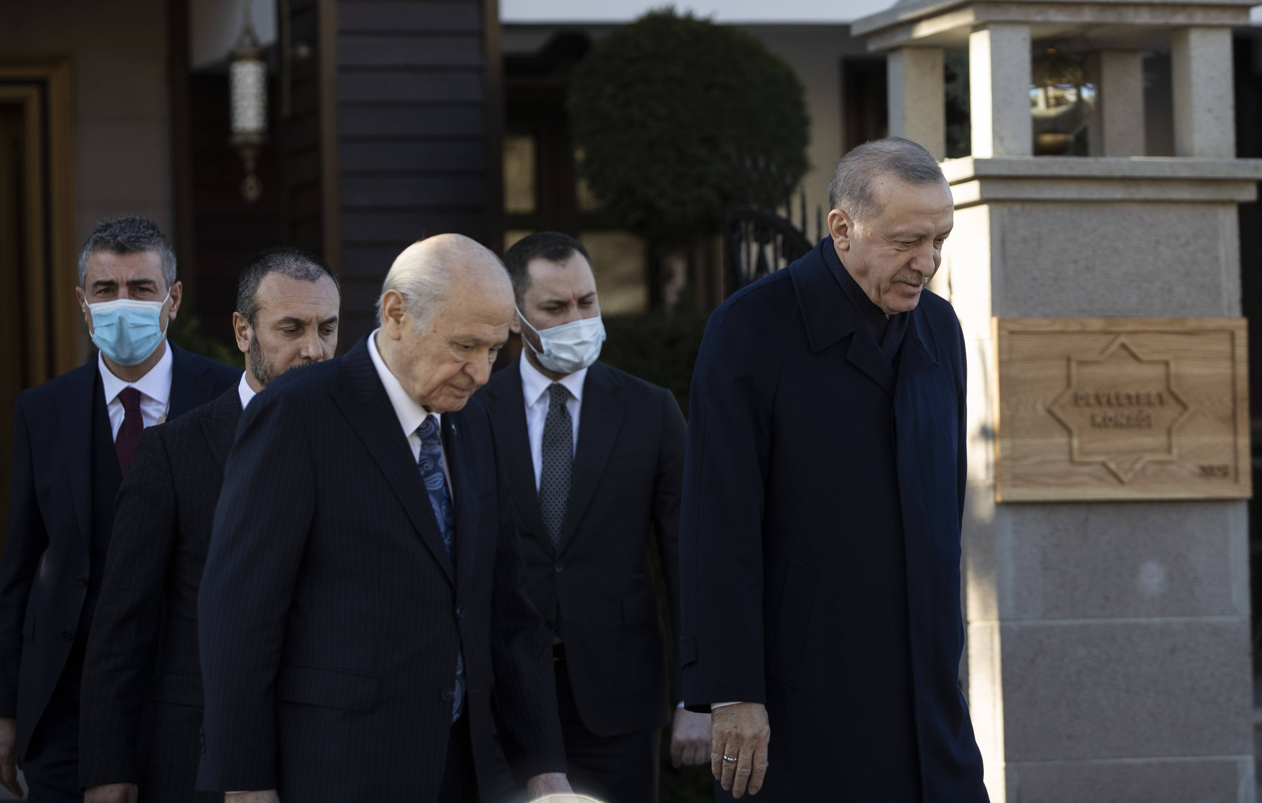 Cumhurbaşkanı Erdoğan, MHP Lideri Devlet Bahçeli'ye sürpriz bir ziyaret gerçekleştirdi. Bahçeli'nin Beytepe'deki evinde basına kapalı olarak gerçekleştirilen görüşme 1 saat sürdü.