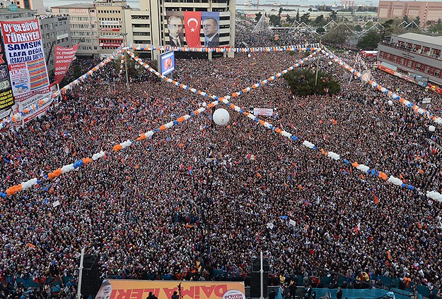 AK Parti Genel Başkanı ve Başbakan Recep Tayyip Erdoğan, partisinin Samsun mitinginde halka sesleniyor.