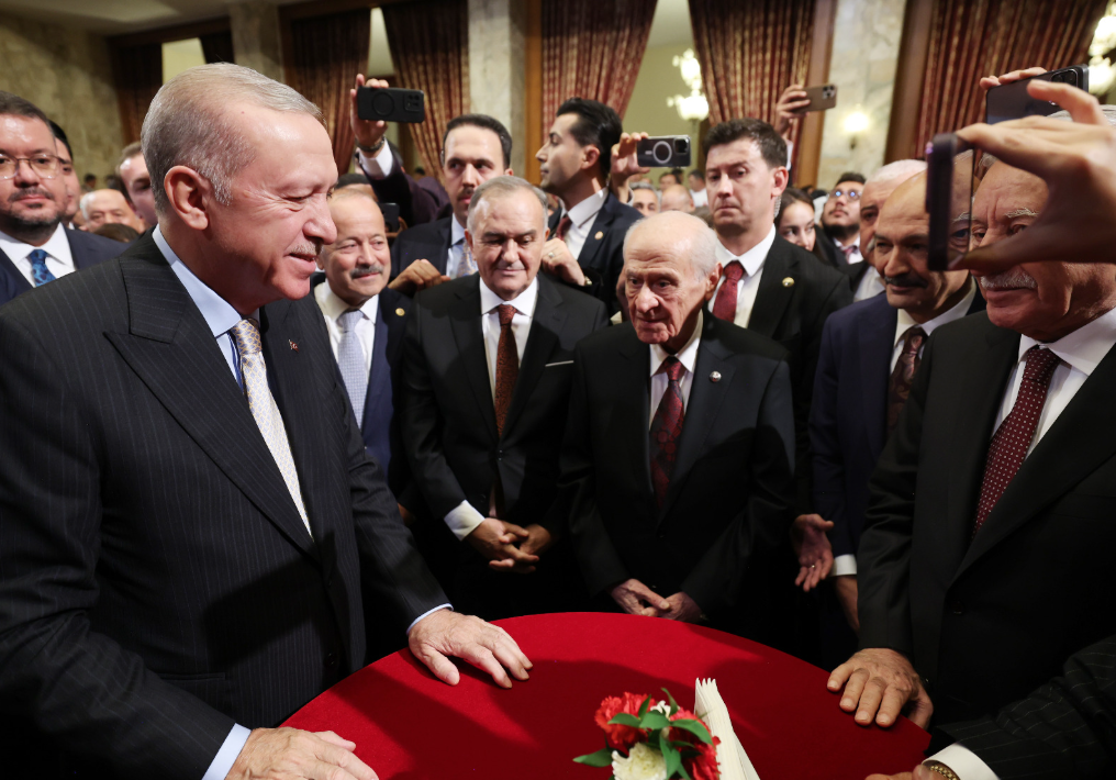TBMM 28. Dönem 4. Yasama yılı açılışına özel düzenlenen resepsiyona katılan muhalefet parti liderlerinin Erdoğan muhabbeti, günün en çok konuşulan konusu oldu. Henüz iki yıl önce 14-28 Mayıs 2023 seçimlerinde kurdukları “Altılı Masa” ile Cumhurbaşkanı Recep Tayyip Erdoğan’ı devirmek için bir araya gelen irili ufaklı muhalefet partilerinin liderleri, dün Erdoğan’a yakın olabilmek için “sandalye kapmaca” oynadı.