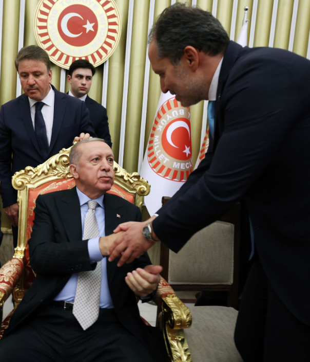 Gelecek Partisi Genel Başkanı Ahmet Davutoğlu, DEVA Partisi Genel Başkanı Ali Babacan, Saadet Partisi Genel Başkanı Mahmut Arıkan ve Yeniden Refah Partisi Genel Başkanı Fatih Erbakan da daha sonra salona girerek Cumhurbaşkanı Erdoğan ile görüştü.