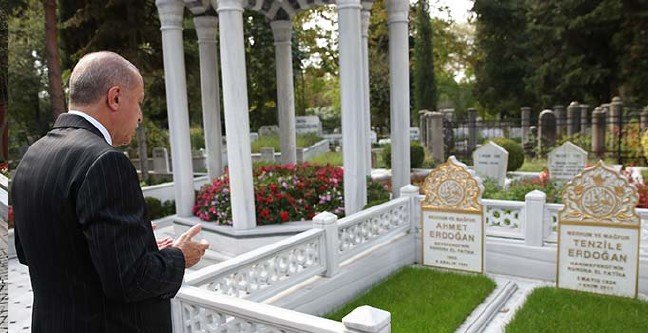 Cumhurbaşkanı Erdoğan, İstanbul'da annesi Tenzile ve babası Ahmet Erdoğan'ın mezarlarını ziyaret etti.