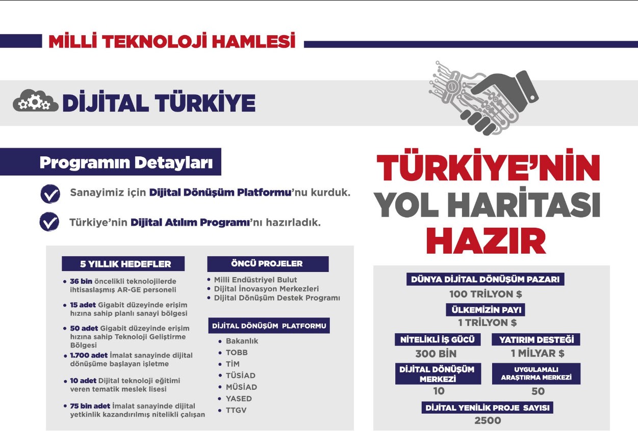 Görselde, "Sanayimiz için dijital dönüşüm platformunu kurduk. Türkiye'nin dijital atılım programını hazırladık." ifadesine yer verildi.