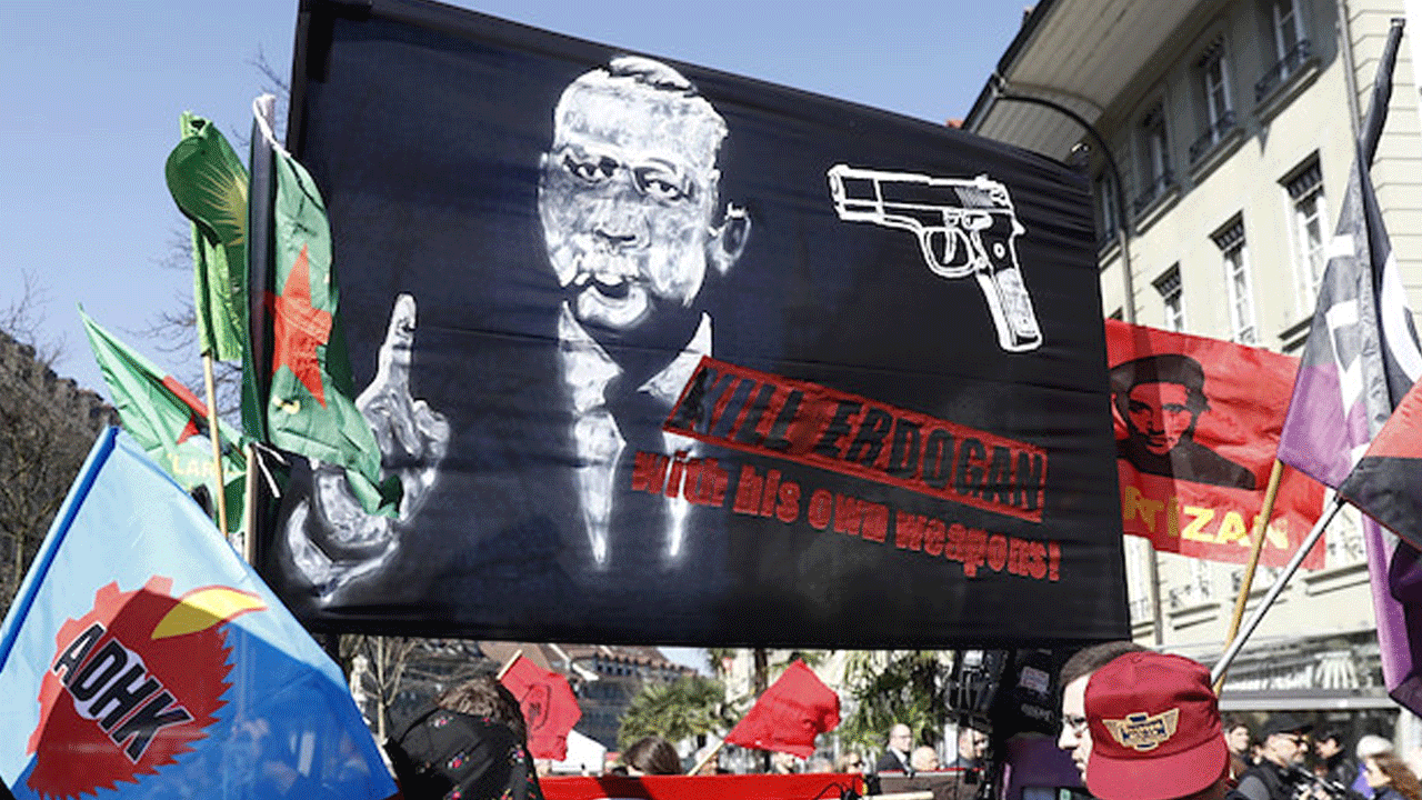 İsviçre'de mahkeme Cumhurbaşkanı Recep Tayyip Erdoğan aleyhinde 2017 yılında açılan pankarta ilişkin kararını açıkladı. İsviçre Federal Mahkemesi, 25 Mart 2017 tarihinde Bern şehrinde terör örgütü PKK'lılar öncülüğünde düzenlenen "Türkiye'de Demokrasi" temalı bir gösteri sırasında, Cumhurbaşkanı Erdoğan'ın şakağına silah doğrultulmuş şekilde tasvir edildiği ve "Kill Erdogan with his own weapons!" (Erdoğan'ı kendi silahlarıyla öldür) ifadesinin kullanıldığı pankartı taşıyan 4 kişi hakkında verilen para cezalarını onadı.