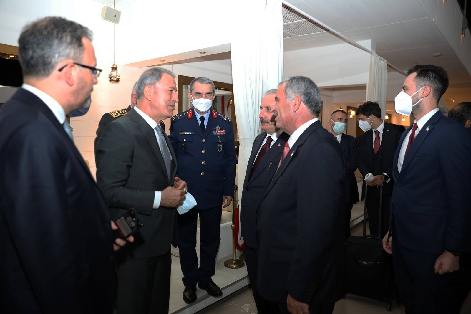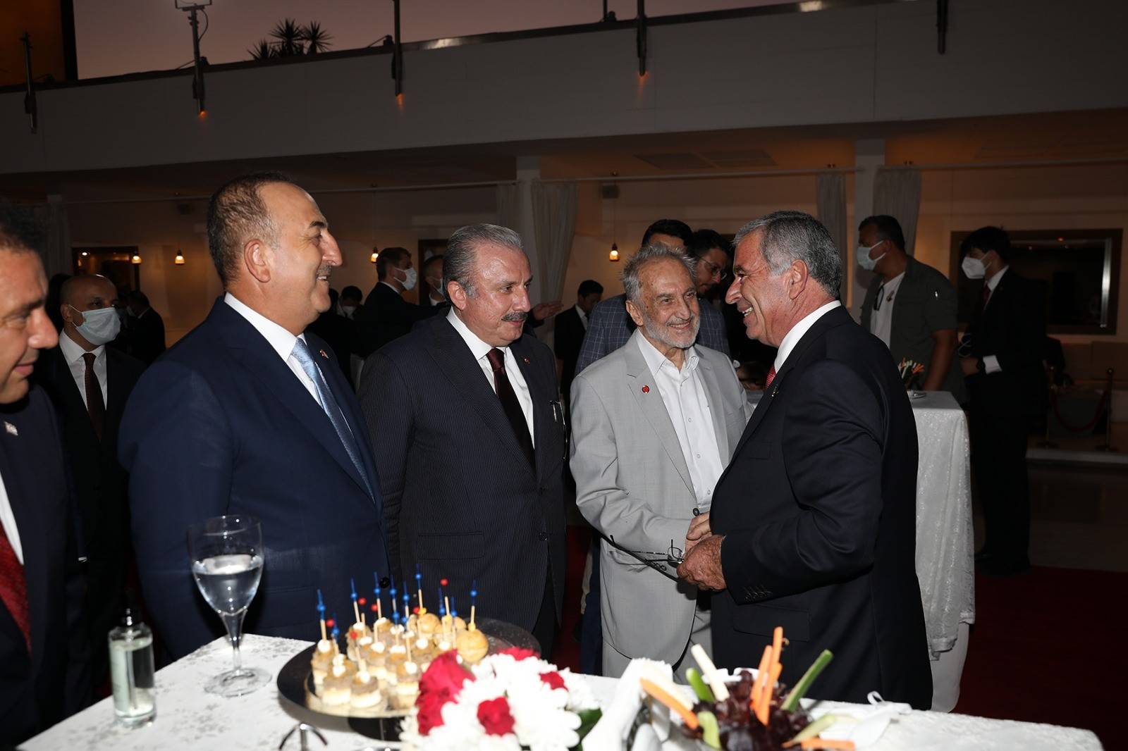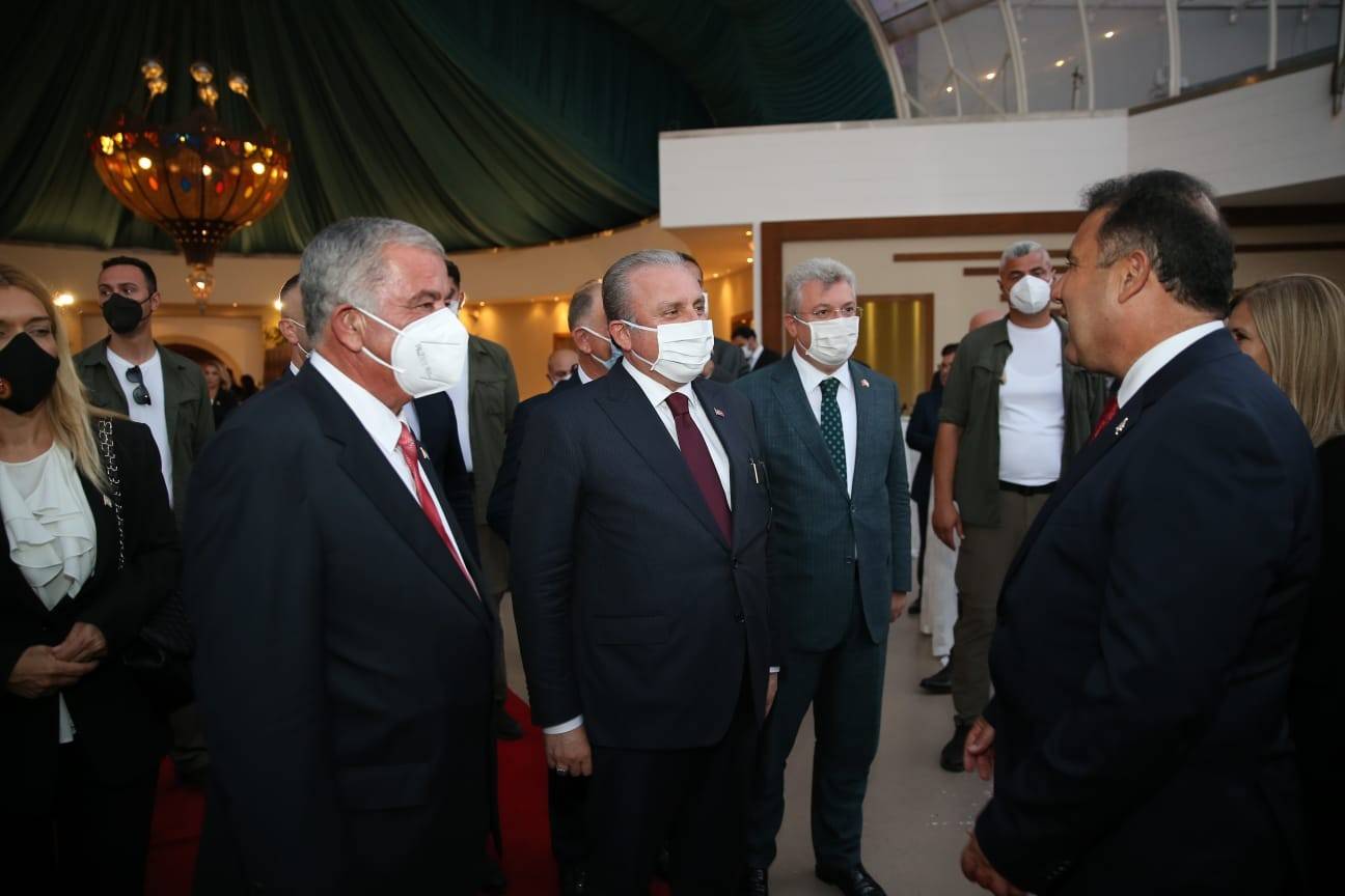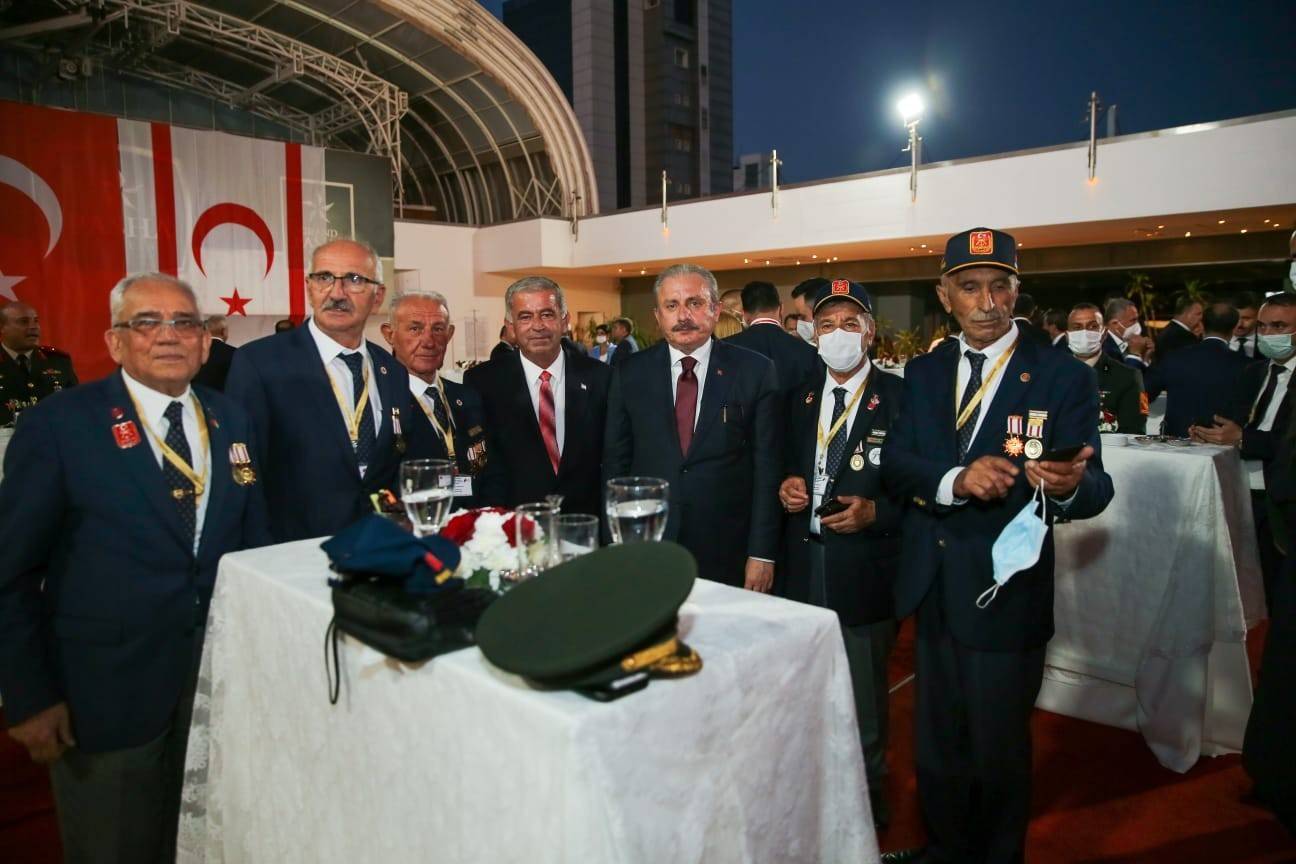 Başkent Lefkoşa’daki Golden Tulip Otel’de düzenlenen resepsiyona TBMM Başkanı Mustafa Şentop, KKTC Başbakanı Ersan Saner, Dışişleri Bakanı Mevlüt Çavuşoğlu, Milli Savunma Bakanı Hulusi Akar ve milletvekilleri katıldı.