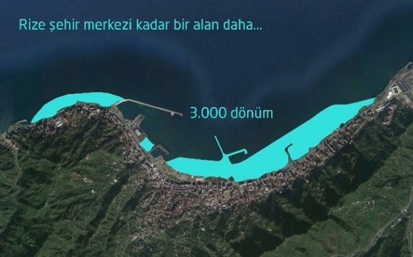 Projenin 1. etabının 300 dönümlük bir alanda inşa edileceği 2. etapta ise toplamda 3 bin dönümü kapsayan deniz alanının doldurulacağı kaydedildi. Yapılan açıklamada Rize şehir merkezinin kurulu bulunduğu alana eş oranda gerçekleştirilecek dolgu alanında kesinlikle özel mülkiyetlere izin verilmeyeceğinin altı çizildi.