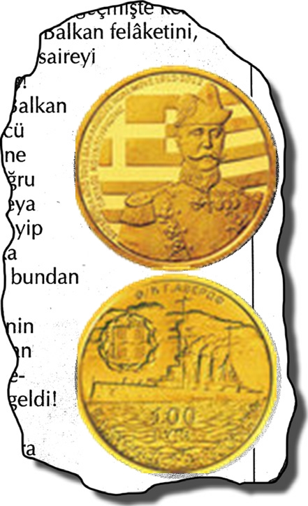 2012’de Balkan Harbi’nin yüzüncü yıldönümü vesilesi ile Yunan Merkez Bankası’nın çıkarttığı paranın ön tarafında Balkan Savaşları’nda donanmamızın canına okuyan Amiral Pavlos Kunturiotis, arka yüzünde de Kunturiotis’in meşhur Averof Zırhlısı var!