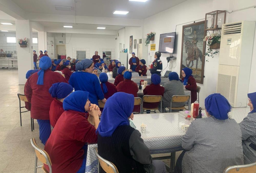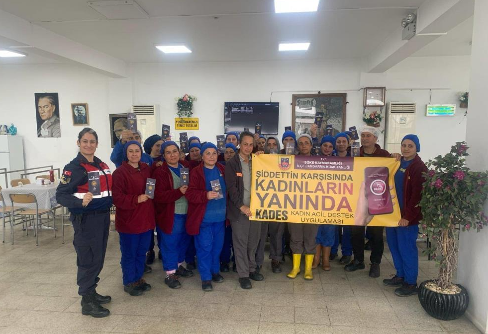 Aydın’ın Söke ilçesinde Söke İlçe Jandarma Komutanlığı Aile İçi Şiddetle Mücadele ve Çocuk Şube Amirliği tarafından bir fabrikada çalışan kadınlar KADES uygulaması ve erken yaşta zorla evlilikler konularında bilgilendirildi.