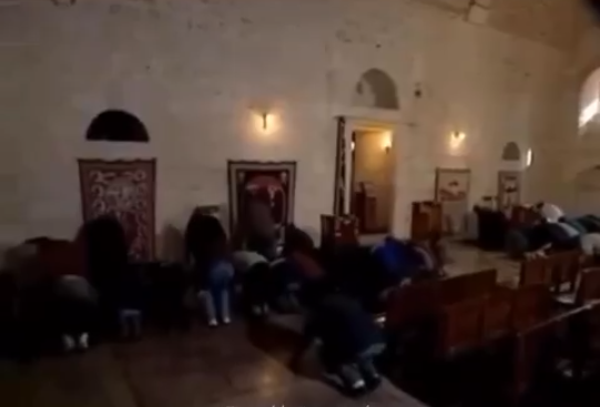 Geçtiğimiz günlerde paylaşılan bir videoda, Ermeni kilisesinin kendine has atmosferinde, bir grubun tıpkı Müslümanların namaz kılış şekline benzer şekilde rükûya gittiği ve secde ettiği görüldü.