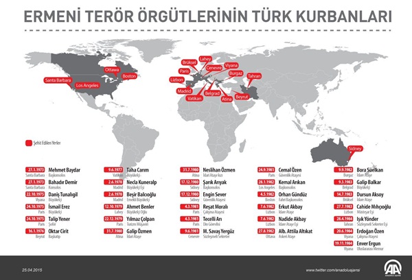 Ermeni terör örgütlerinin 1973 yılında başlattığı ve 1986'ya kadar süren Türk diplomatlarına yönelik saldırılarda 31 kişi şehit edildi.