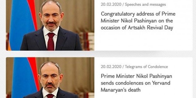 Ermenistan Başbakanı Nikol Paşinyan, Ermenistan Başbakanlık sitesinde yayınlanan iyi ve kötü haberlerde kullanılmak üzere iki ayrı fotoğraf çektirdi. Başbakanlık sitesinde Paşinyan’ın olumlu haberlerde gülerken, kötü haberlerde somurturken verdiği poz kullanılıyor.