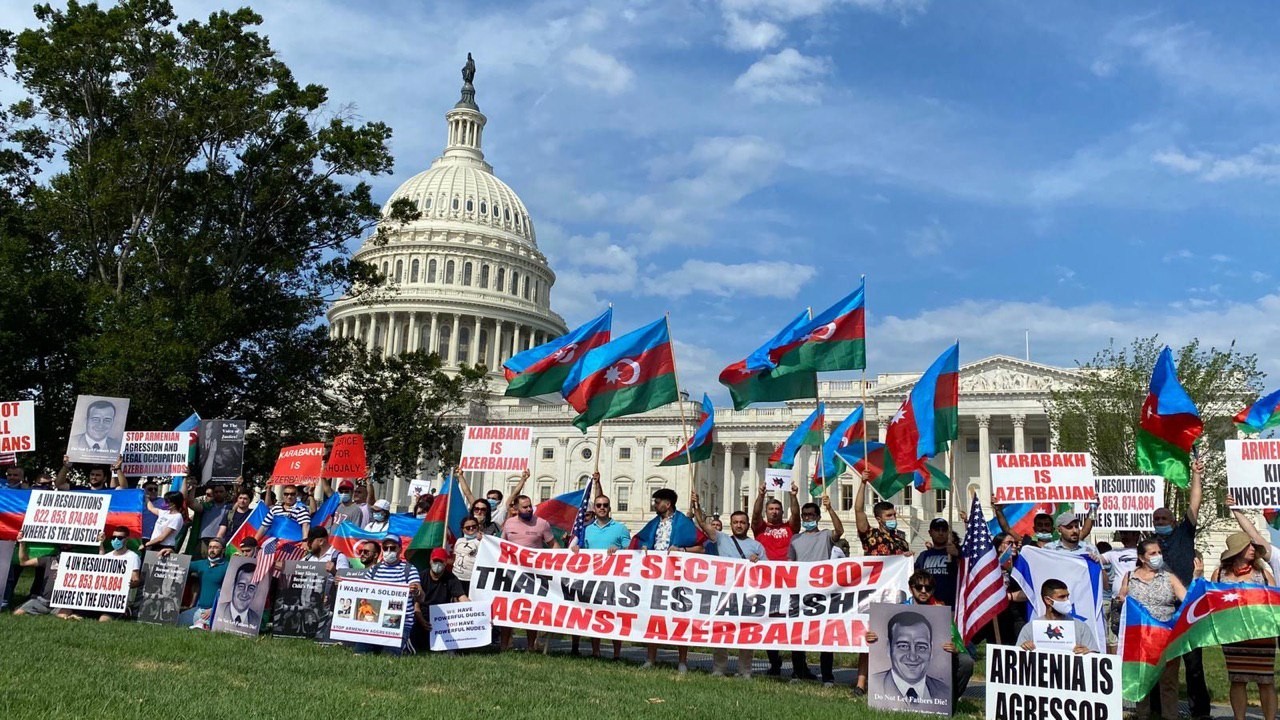 ABD Kongre Binası önünde toplanan Azerbaycanlılar, Ermenistan'ı protesto etti.