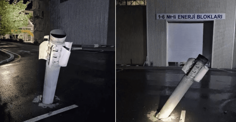 Azerbaycan’ın Ermenistan’ın saldırısını engellediği anların görüntüleri paylaşıldı. Etkisiz hale getirilen füzelerin dış bölümünün ise santralin yanına düşerek betona saplandığı görüldü.