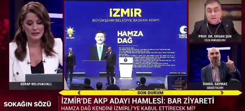 Yerel seçimin tartışıldığı canlı yayında hukukçu Prof. Dr. Ersan Şen ile gazeteci İsmail Saymaz arasında tansiyon yükseldi. Saymaz, kendisinin 'uzun konuştuğundan' dert yakınarak argo kelime kullanan Şen'e, "Benimle bir daha böyle konuşursanız üslubumu değiştiririm, üslupsuzluk yaparım, saygısızlığı sürdürürseniz benden ağır cevap alırsınız" diye yanıt verdi. Sunucu yayına ara verdi.