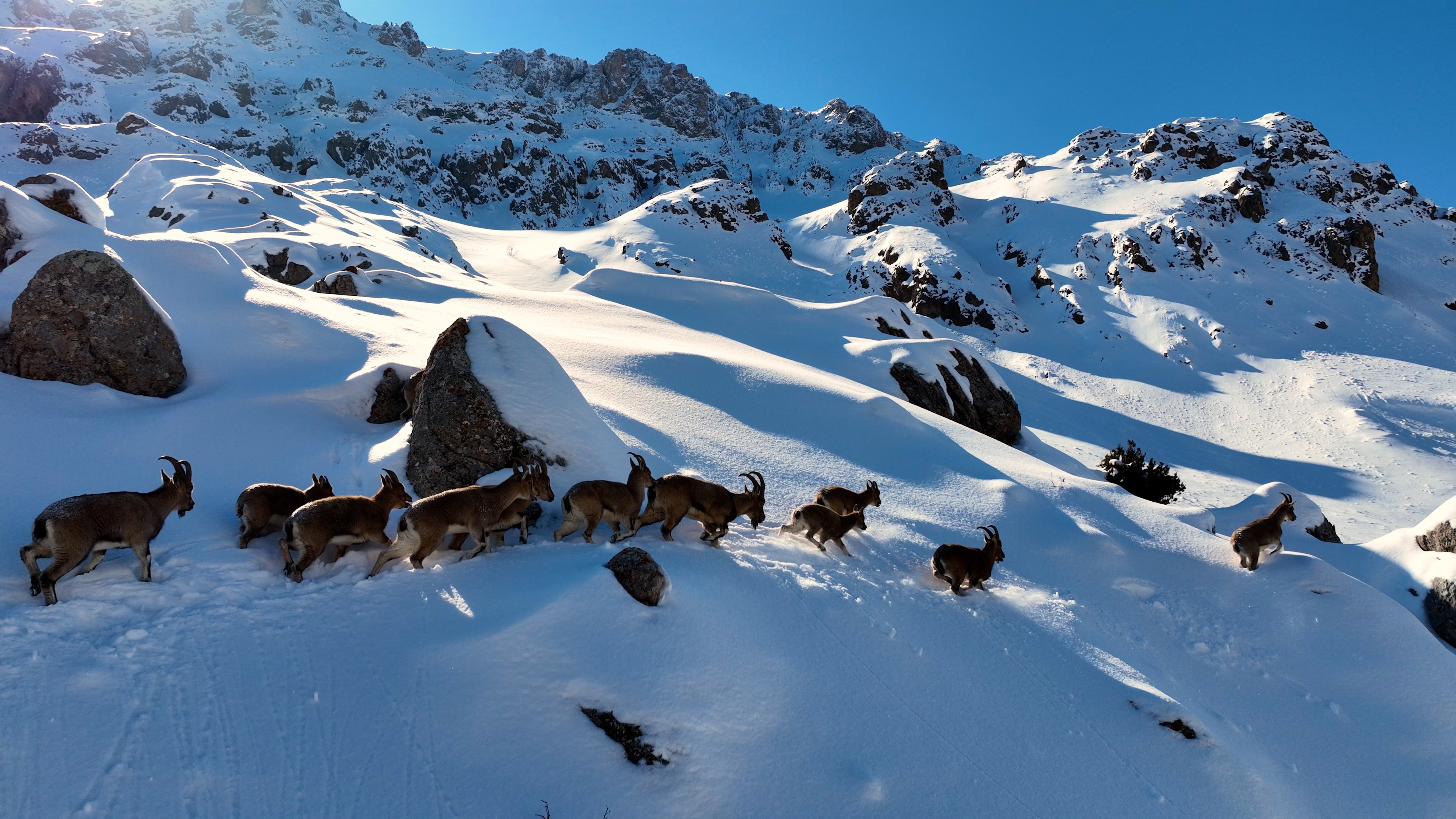 Türk Silahlı Kuvvetlerinin (TSK) başarılı operasyonlarıyla terörden temizlenen 3 bin 300 rakımlı Munzur Dağları'nda yabani hayvan popülasyonu arttı. Çok sayıda yaban keçisinin karlı dağları aşarak göç yoluna koyulması dron ile görüntülendi. Görüntüler belgeselleri aratmadı.