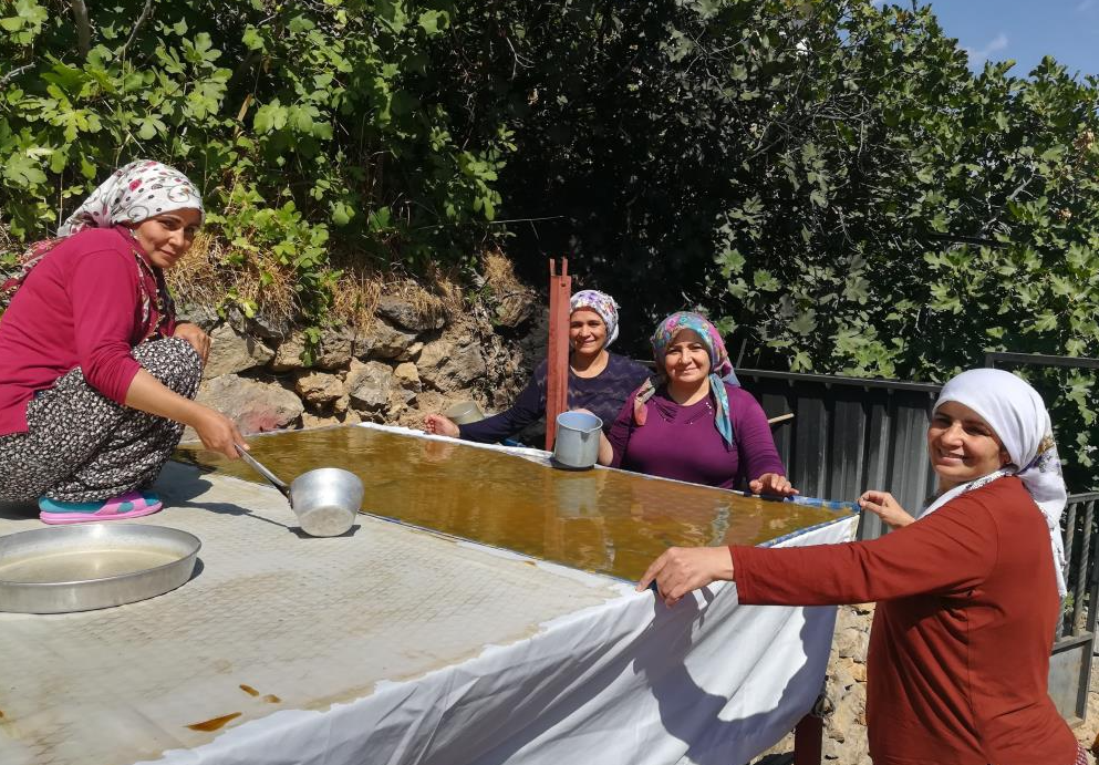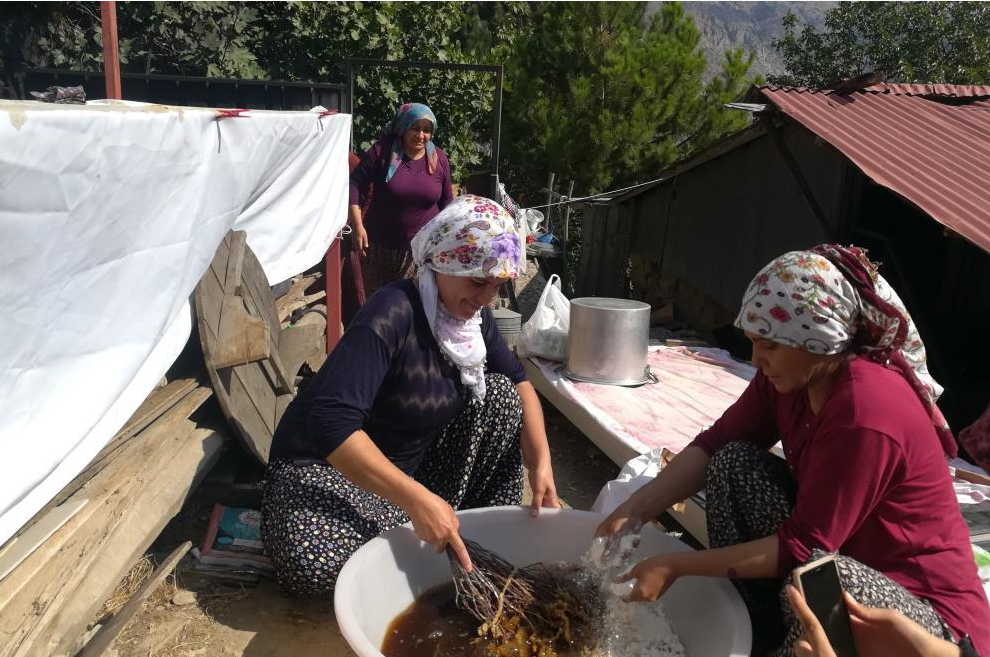 Kolektif bir çalışma sonucu elde edilen ürün ya satılıyor ya da evde kışlık ihtiyaç olarak kullanılıyor. Pestil ve pekmez yapımı zamanı geldiğinde imece usulü yapılan çalışmalar, zahmetli işi eğlenceli hale dönüştürüyor. İlçenin Apçağa köyünde pestil yapımı için bir araya gelen kadınlara erkekler ise dut silkelemek için yardım ediyorlar. Dutların silkelenmesinin ardından bütün işler neredeyse kadınlara kalıyor.