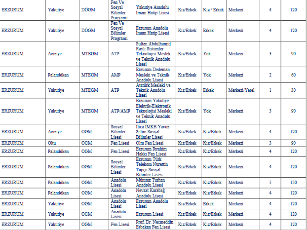 Erzurum’da bulunan liselerin kontenjan kapasitesi ne kadar?