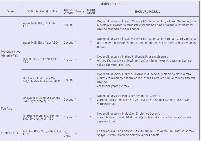 Bu ilanın yayımlandığı tarihten itibaren 15 (on beş) gün içerisinde Dr. Öğr. Üyeleri ilan edilen fakülte dekanlığına, Doçentler ise Rektörlük Personel Dairesi Başkanlığına başvurmaları gerekmektedir.