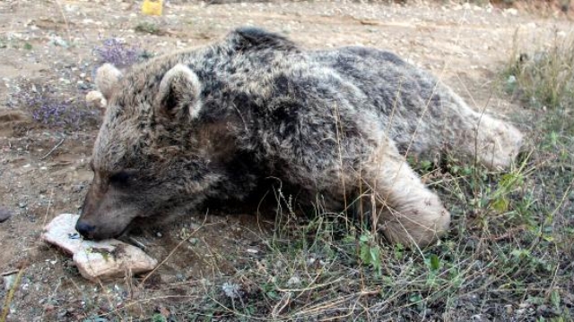 Erzurum'un Oltu ilçesine bağlı Subatuk Mahallesi'nde bir vatandaşın bulduğu boz ayı yediği bir şeyden zehirlenerek telef oldu.
