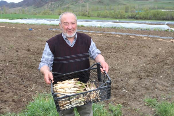 Erzurum'un Oltu ilçesine bağlı Tutmaç köyünden Hollanda'ya giden Hilmi Sağlam (66), 43 yıl sonra döndüğü ülkesinde kuşkonmaz üretimine başladı