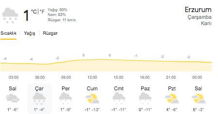 Kar yağışının etksini sürdürdüğü Erzurum'da yarın için Meteorolji tarafından kar yağışının beklendiğine ilişkin açıklamaları sonrası hem öğrenciler hem de veliler tarafından Erzurum'da okullar tatil mi, Erzurum'da yarın okullar tatil olacak mı? Yarın Erzurum'da okul tatili var mı? sorlarını sormaya başladı. Erzurum Valiliğinden yarın okulların tatil edildiğine ilişkin henüz bir son dakika açıklaması gelmedi.