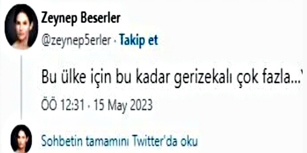 Cumhurbaşkanı adayı Kemal Kılıçdaroğlu'na açık desteğiyle ön plana çıkan oyuncu Zeynep Beşerler, seçim sonuçlarını hazmedemeyerek, halka "gerizekalı" dedi.