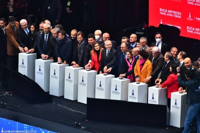 İzmir'de Buca Metrosu’nun temeli CHP Genel Başkanı Kemal Kılıçdaroğlu tarafından atıldı. Tören, Kılıçdaroğlu'nun siyasi mitingine döndü. Törende konuşan Kılıçdaroğlu, bir metro ağı üzerinden, "Türkiye'yi ayağa kaldıracağız" mesajı verdi.
