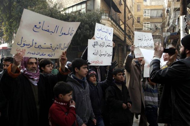 Görgü tanıklarından alınan bilgiye göre, İdlib şehrinin Ermanaz ve Kefr Teharim bölgelerinde Suriyeliler, Fransız mizah dergisi Charlie Hebdo'nun Peygamber Efendimiz Hazreti Muhammed'i ''tasvir eden karikatürler"iyeniden yayınlamasını protesto etmek amacıyla gösteri düzenledi.
