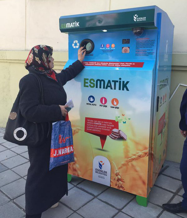 Esenler’de yeni bir geri dönüşüm uygulaması daha hayata geçti. Esenler Belediye Başkanı Mehmet Tevfik Göksu tarafından geçen yıl Çevre ve Şehircilik eski Bakanı İdris Güllüce’nin katıldığı etkinlikte tanıtımı yapılan ve atılacak atıklar karşılığında ekmek kazandıran ESMATİK projesi, ilçenin üç farklı noktasında vatandaşların hizmetine sunuldu.