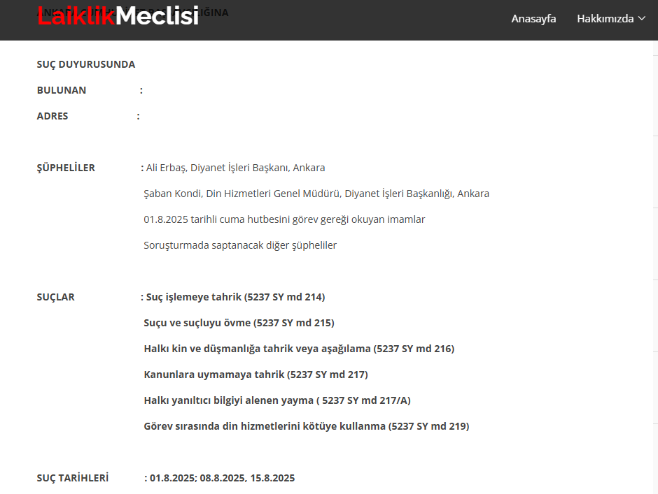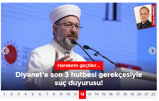 Milletin manevi rehberi olan Diyanet İşleri Başkanlığı’na yönelik yeni bir saldırı daha devreye sokuldu. Cumhuriyet gazetesinin manşetine taşıdığı haberde, “Laiklik Meclisi” adlı marjinal oluşum, üç cuma hutbesi üzerinden Ali Erbaş ve imamlar hakkında suç duyurusunda bulundu.