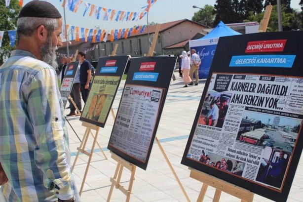 Sergide; aralarında Akit Gazetesi’nin manşetlerinin de yer aldığı birçok gazetenin haberleri sergileniyor.