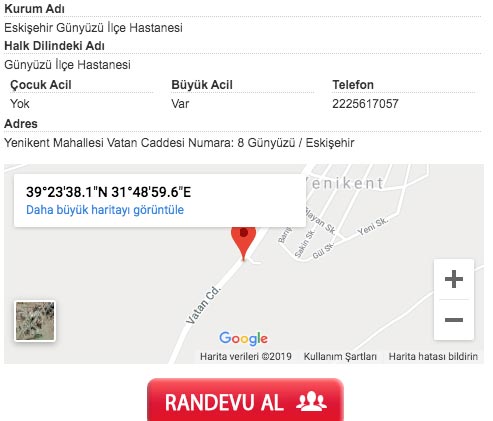 Eskişehir Günyüzü İlçe Hastanesi randevu al