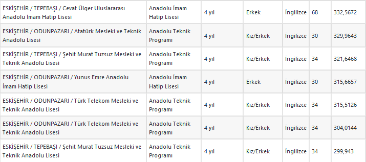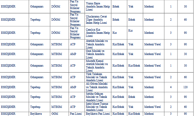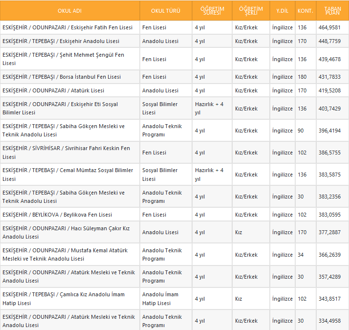 Eskişehir liseleri taban puanı 2021 |Eskişehir liseleri kontenjanları 2021