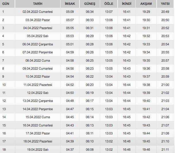 Eskişehir Ramazan imsakiyesi 2022 | Eskişehir iftar saati sahur imsak vakti...