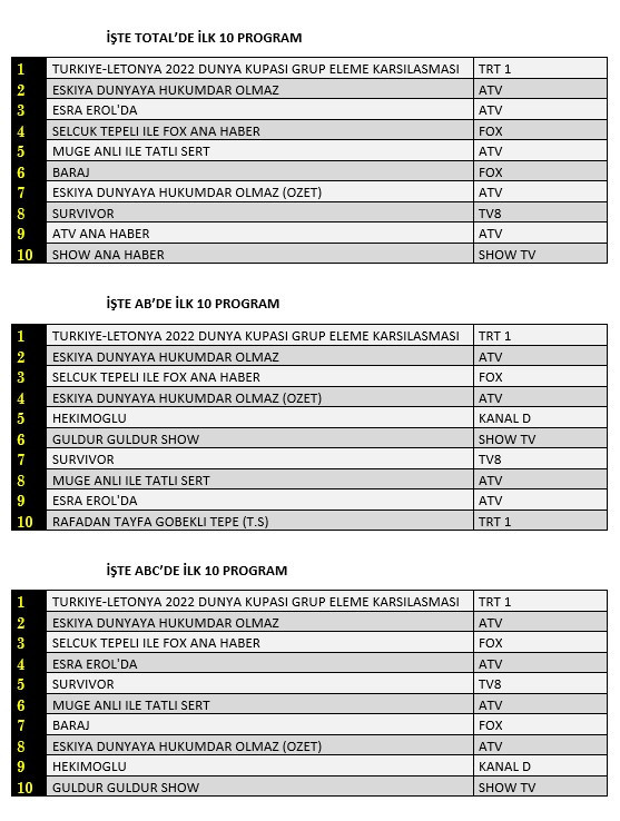 Ancak dün akşam TRT1 ekranlarında yayınlanan Türkiye – Letonya mücadelesi tüm yapımların reytinglerini düşüren güçlü bir etken oldu.