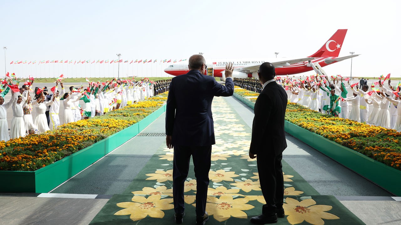 Cumhurbaşkanı Recep Tayyip Erdoğan, resmi ziyarette bulunmak üzere geldiği Addis Ababa’da Etiyopya Başbakanı Abiy Ahmed Ali tarafından resmi törenle karşılandı. Başkan Erdoğan’a gösterilen sevgi ve renkli karşılama töreni dünyanın da dikkatini çekti.