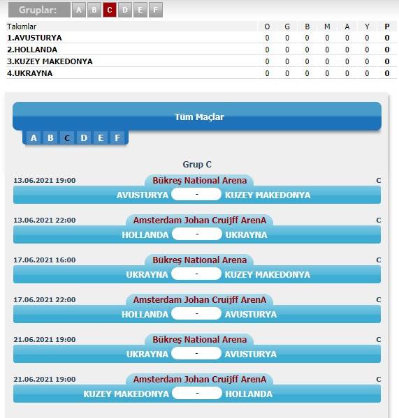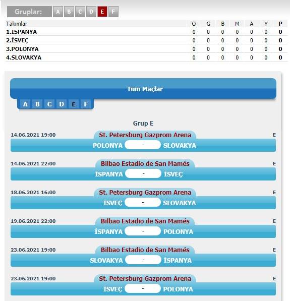 EURO 2020 puan durumu, EURO 2020 Fikstür