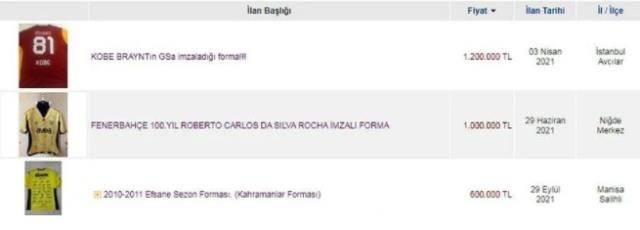 NTV'de yer alan habere göre; İnternet sitesindeki ilanlar arasında helikopter kazasında hayatını kaybeden dünyaca ünlü basketbolcu Kobe Bryant'ın, 2011 senesinde Galatasaray'ı ziyaret edip antrenmanda oyuncularla sohbeti sırasında giydiği forma, fiyatı ile en çok dikkati çeken ilan oldu. İstanbul'dan ilanı veren internet kullanıcısı, formayı 1 milyon 200 bin liraya satışa çıkardı.