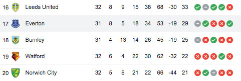 Bu sonuçla birlikte Everton puanını 29'a çıkararak küme düşme hattıyla arasını 1 puan daha açarken, Leicester City ise 41 puana yükseldi. Ligin 34. haftasında Everton deplasmanda Liverpool'a misafir olacak. Leicester ise evinde Aston Villa'yı ağırlayacak.