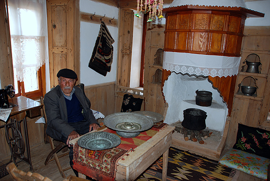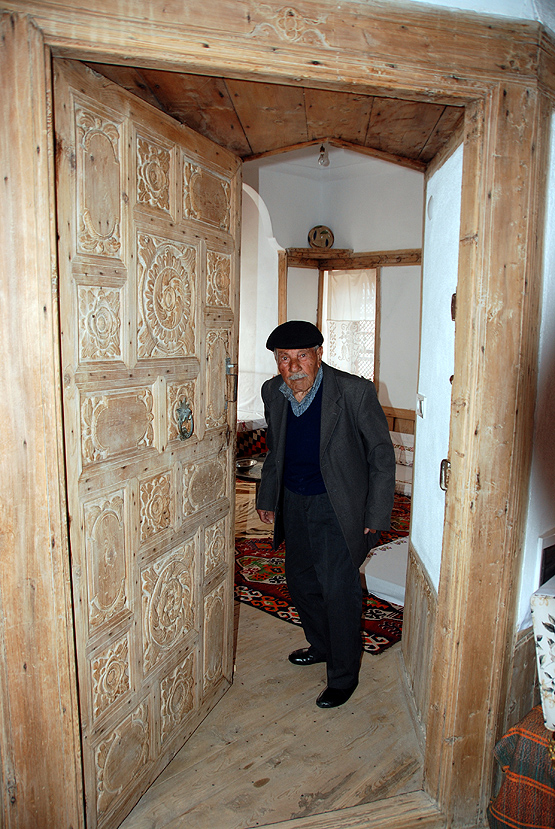 Birbirinin içine geçerek taş duvarların dışına taşan uç kısımlarına "düğme" denilen andız ağacından ahşap iskeletlerle kurulu bu evlerden birini, uzun yıllar çobanlık yaparak biriktirdiği parayla satın alan Karahan, 9 sene evvel eşini kaybedince tek başına kalmış.