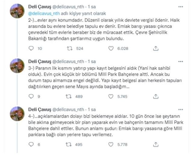 Sedat Peker'in konuyla ilgili paylaşımlarının devamı ise şu şekilde: "Beykoz bölgesindeki hemen hemen bütün evler aynı konumdadır. Düzenli olarak yıllık devlete vergisi ödenir. Halk arasında bu evlere belediye tapulu ev denir. Emlak barışı yasası çıkınca çevredeki tüm evlerle beraber biz de müracaat ettik. Çevre Şehircilik Bakanlığı tarafından şartlarımız uygun bulundu.