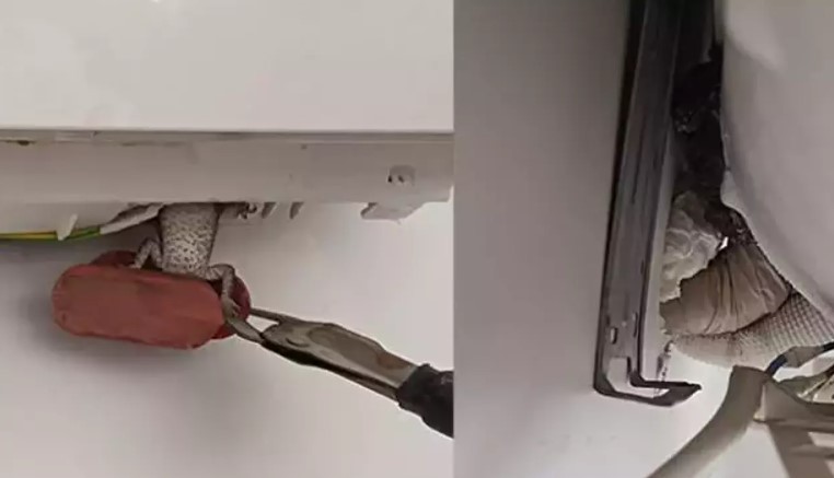 Hatay'da bir evin klimasına bukalemun girdi. Olay yerine çağırılan itfaiye , bukalemunu girdiği klimadan çıkardı.