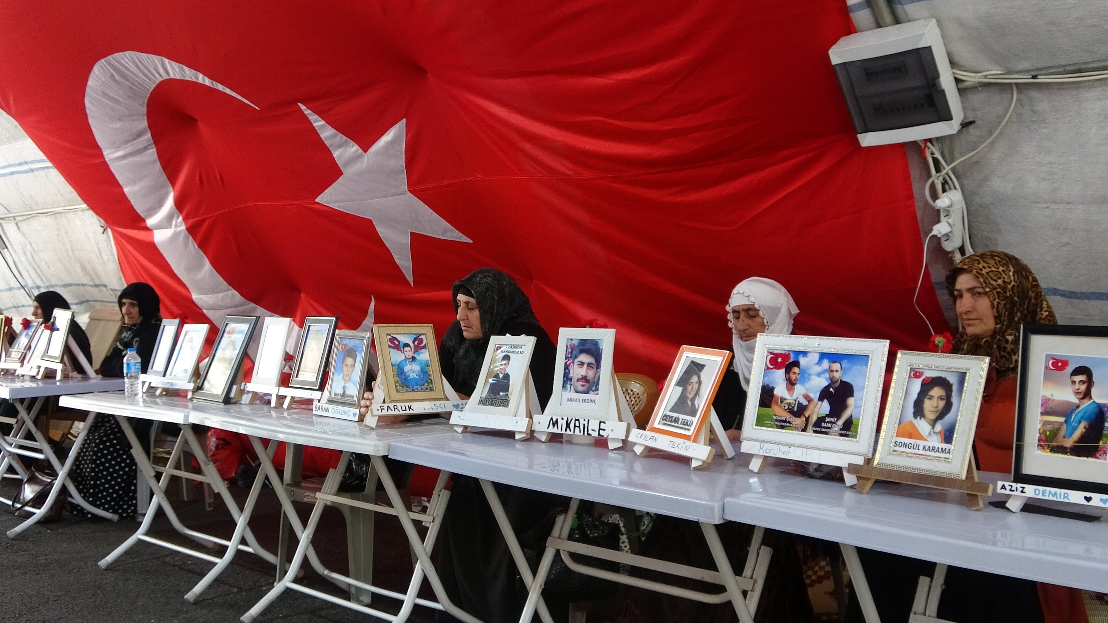 3 Eylül 2019 tarihinde farklı kentlerden Diyarbakır’a gelerek oturma eylemi başlatan ailelerin HDP il binası önünde kurdukları çadırda evlat direnişi bin 308 gündür aralıksız sürüyor.