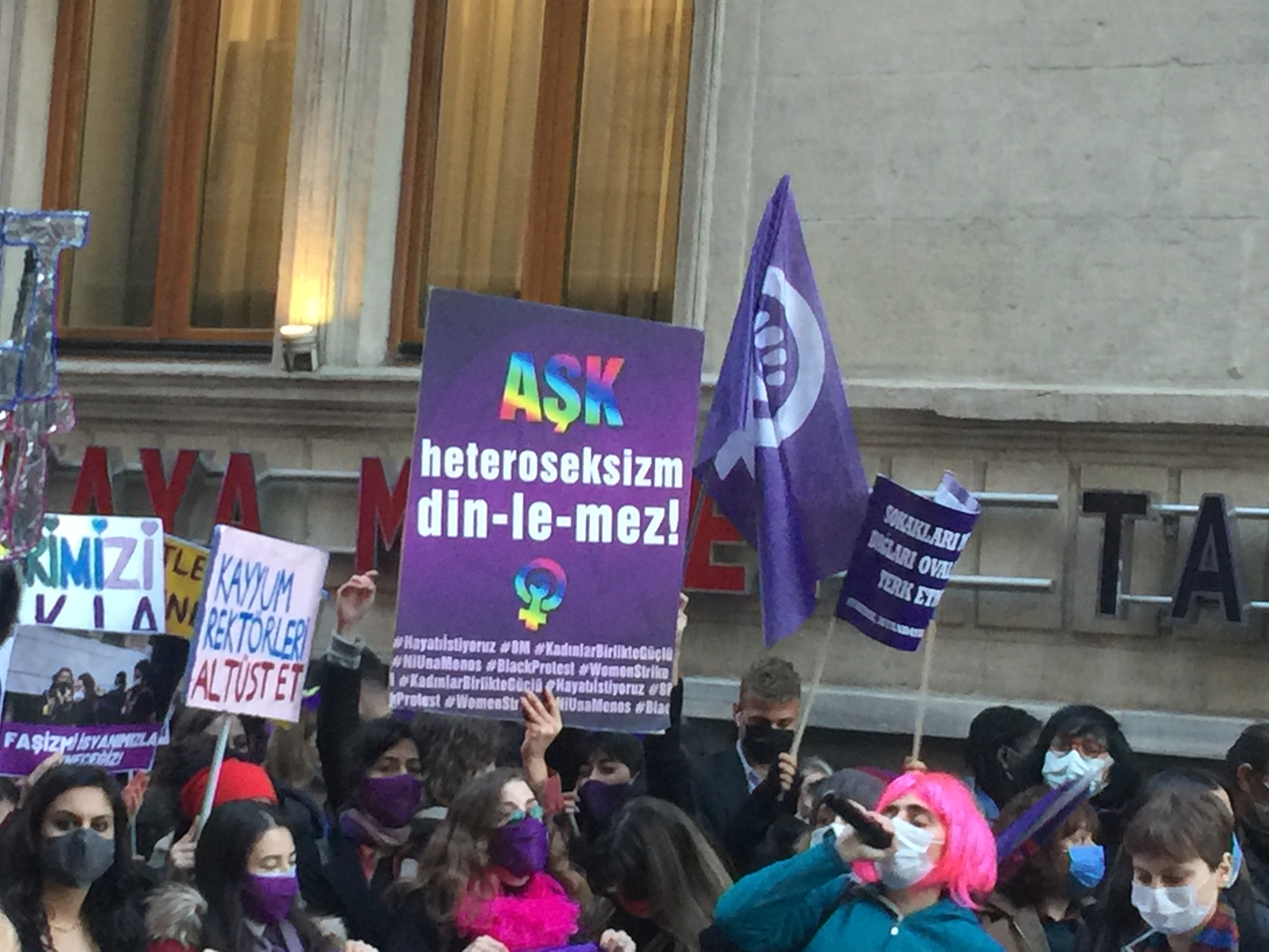 Sokağa çıkma yasağı saati gelince gruptakiler Karaköy'e yöneldi. Ardından Kaptan-ı Derya Kılıç Ali Paşa Camisi önünde bir süre beklediler. Emniyet güçleri camiye yönelik olası bir provokasyonu engellemek için burada da barikat kurdu. Yine polis engeline takılan gruptan bazıları 'feminist gece yürüyüşü' adlı eylemde buluştu.