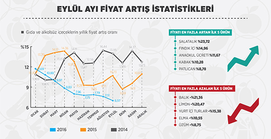 Tüketici fiyatları bazında eylülde en yüksek fiyat artışı yüzde 23,72 ile salatalıkta görüldü.
