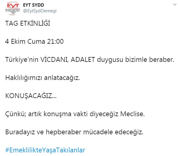 EYT SYDD, sosyal medya üzerinden yaptığı açıklamada, Meclis’e artık konuşma vakti diyeceklerini söyledi.