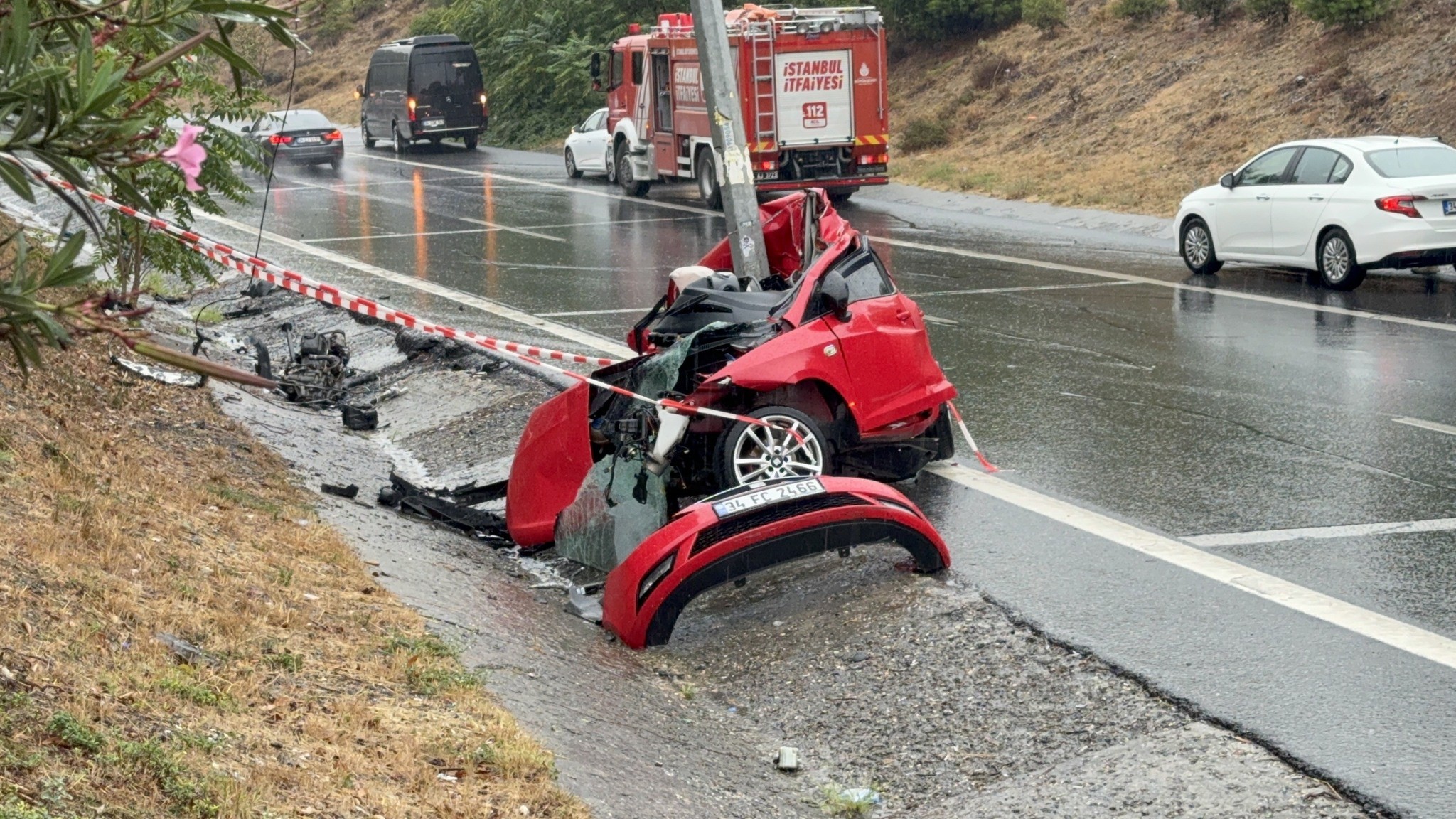 İstanbul Eyüpsultan’da sabah saatlerinde meydana gelen kazada, sağanak yağışın kayganlaştırdığı yolda kontrolden çıkan otomobil aydınlatma direğine çarptı. Çarpmanın şiddetiyle araç kağıt gibi katlanırken sürücü Erkan Soytürk (43) hurdaya dönen otomobilin içinde sıkışarak olay yerinde feci şekilde can verdi.