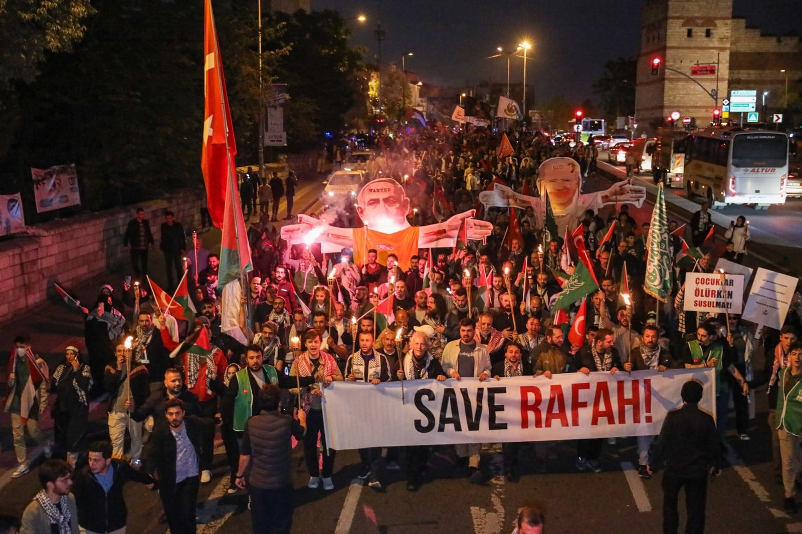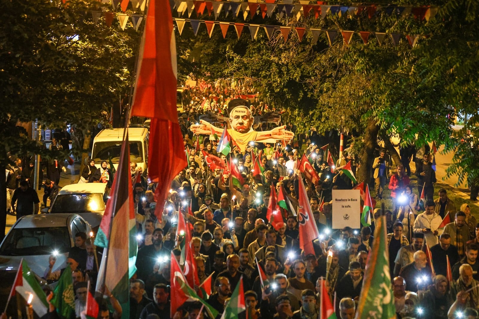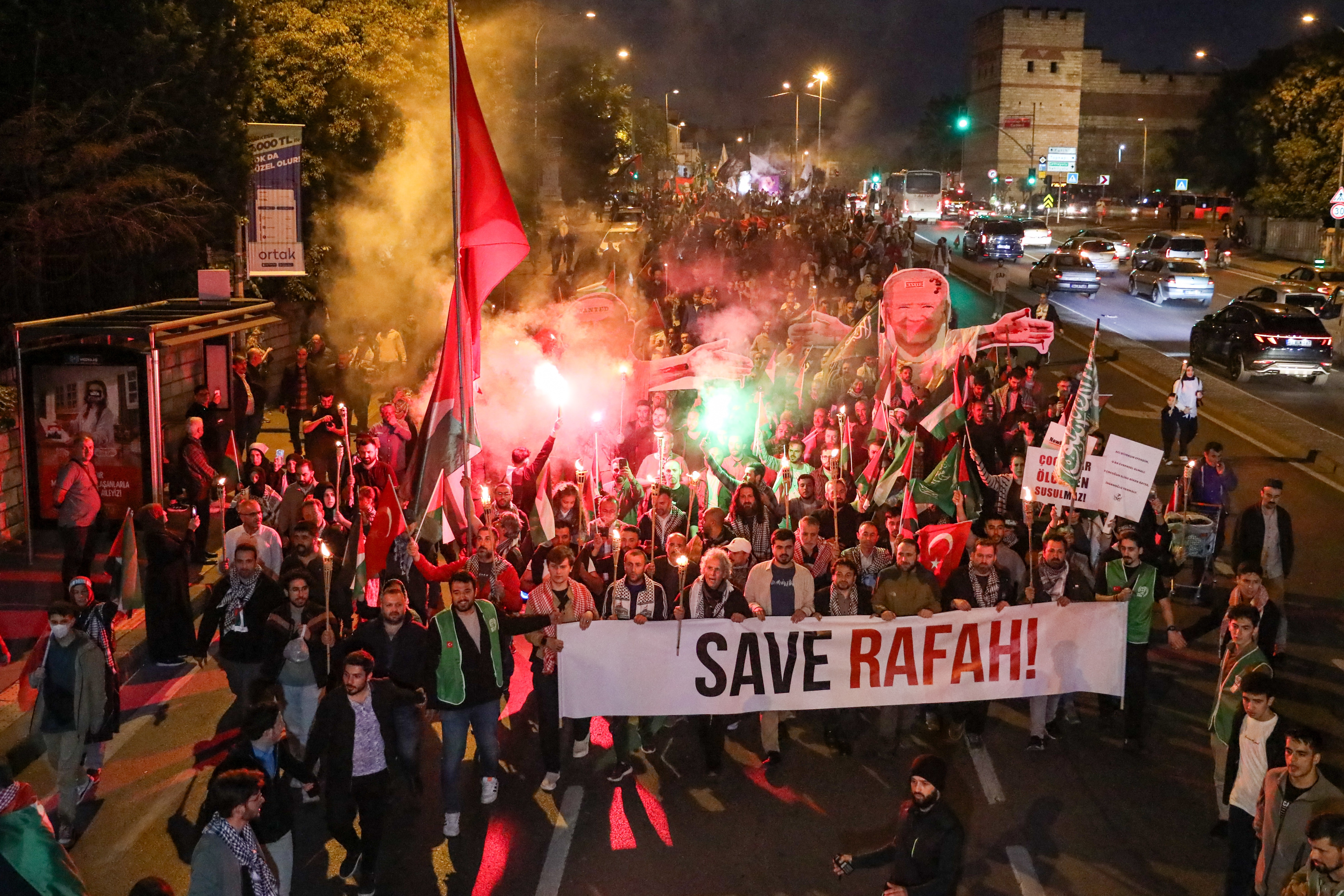 Gazze'deki İsrail işgalinin bitmesi ve Filistin'in özgürlüğü için düzenlenen eylem, akşam namazının ardından Edirnekapı Mihrimah Sultan Camiî’nin önünden başladı. Biraraya gelen binlerce katılımcı, kortej halinde Eyüpsultan Meydanı’na kadar yürüdü. Yürüyüş boyunca, “Katil İsrail Filistin’den Defol, Free Free Palestine, Katil İsrail İşbirlikçi ABD, Nehirden Denize Özgür Filistin” sloganları atıldı, tekbirler getirildi.