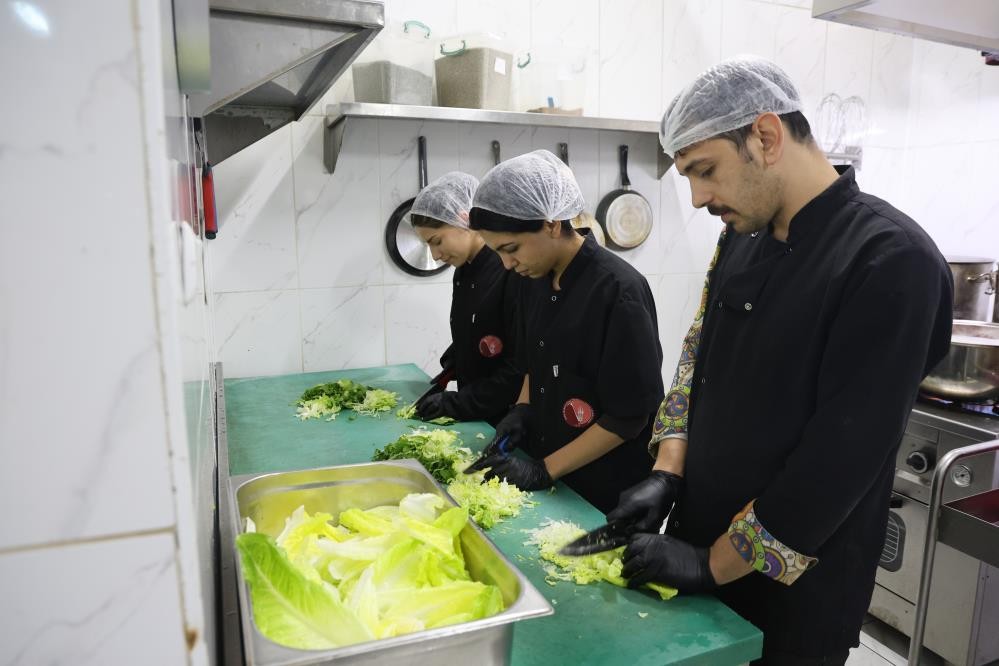 300 öğrenci ve 38 öğretmen kadrosu ile eğitime devam ettiklerini belirten Okul Müdürü Sadrettin Bayram, "Okulumuz bünyesinde uygulama otelimiz bulunmaktadır. Uygulama otelimizde mutfağımız mevcut. Uygulama otelimizde 39 odamız ve 117 yatağımız mevcuttur. Günlük yüzde 25-30 kapasiteyle kış aylarını geçiriyoruz. Yaz aylarında ise yüzde 80 ile yüzde 90 oranlarına kadar çıkabiliyor. Mutfağımızda çevre okullara özellikle belde okullarına yemek yapıp gönderiyoruz. Bin öğrenciye buradan yemek hazırlayıp gönderiyoruz. Bunların tamamında öğretmenlerimizin gözetiminde öğrencilerimiz görev alıyor. Odalarımızın temizliği tamamen öğrencilerimiz tarafından yapılıyor. Bunun sonucunda 2025 yılında 19 milyon ciro elde ettik. Bu cironun büyük bir kısmını öğrencilerimize harçlık olarak, çalışma alanlarımızın iyileştirilmesi ve malzeme alımında bu cirodan faydalanıyoruz. Geriye kalan kısmı da bakanlığımıza aktarıyoruz" dedi.