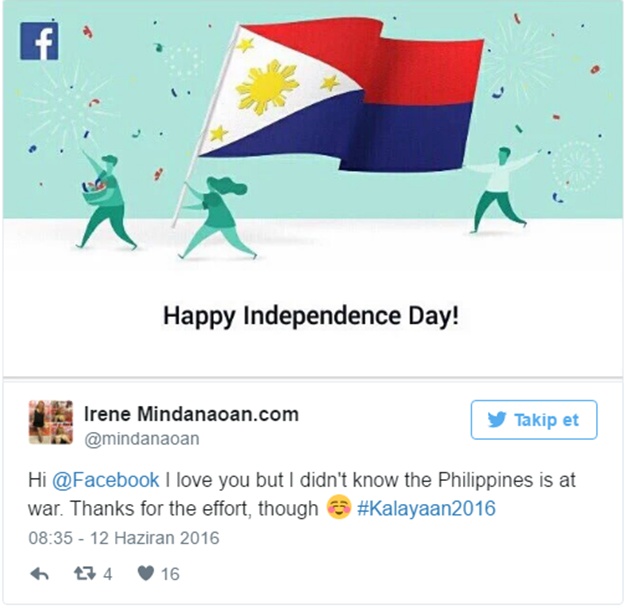 Facebook, Filipinlerin Kurtuluş Günü'nü kutlamak isterken ülkeyi savaşa soktu