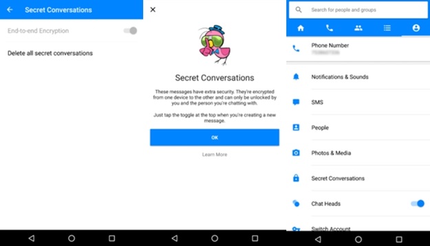 Baştan sonra şifreli mesajlar, Facebook'un söylediğine göre iki kişi arasında geçen konuşmanın başkaları tarafından okunabilmesini engelliyor ve mesajları tamamen güvenli kılıyor. Sadece istenildiği zaman aktifleştirilebilen baştan sonra şifreleme özelliği, konuşmanın yapıldığı cihazlar arasında bağ kurduğu için, aynı hesaba girilse bile şifreli olan konuşmaların başka cihazlar tarafından görülmesini engelliyor.